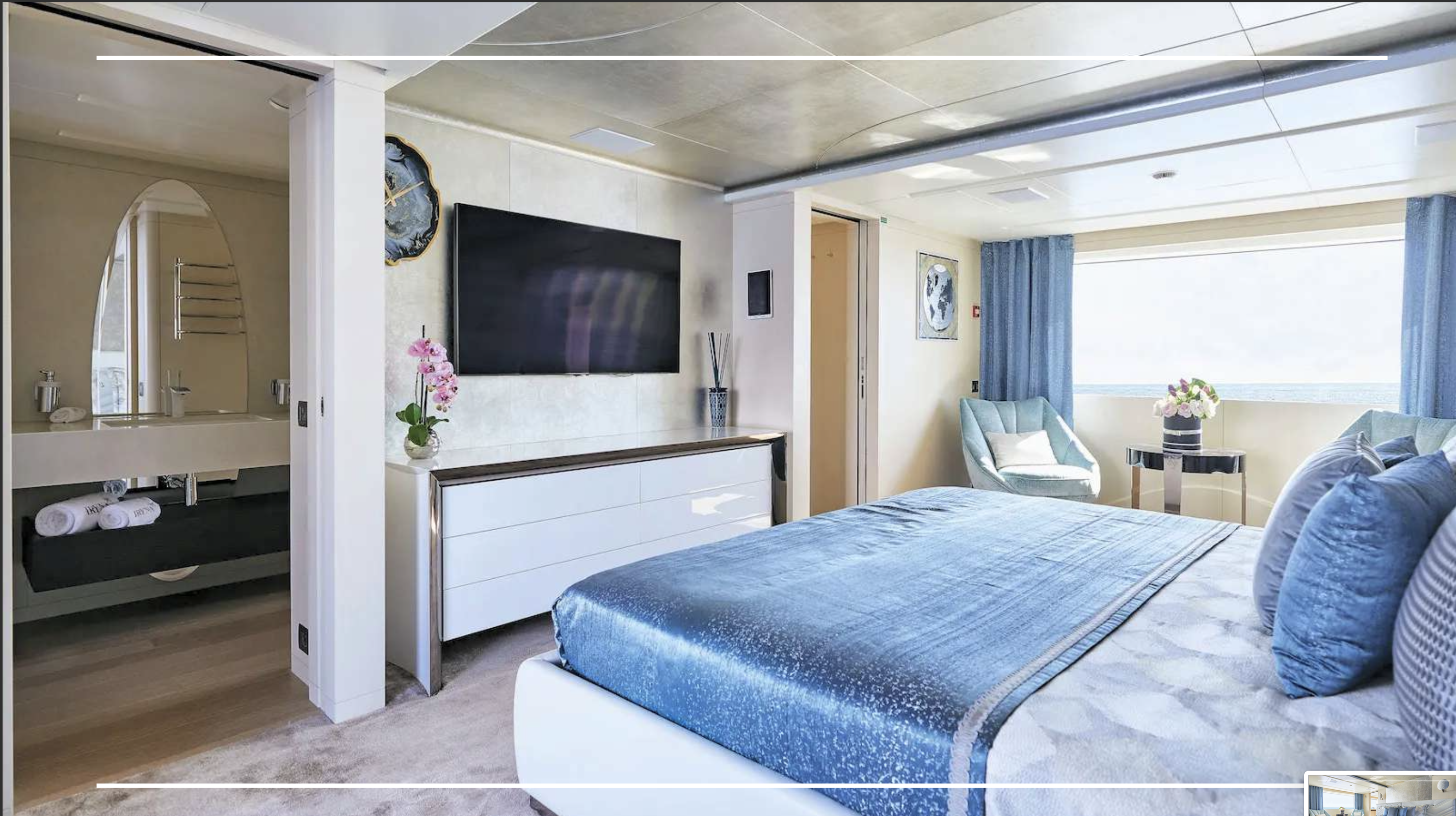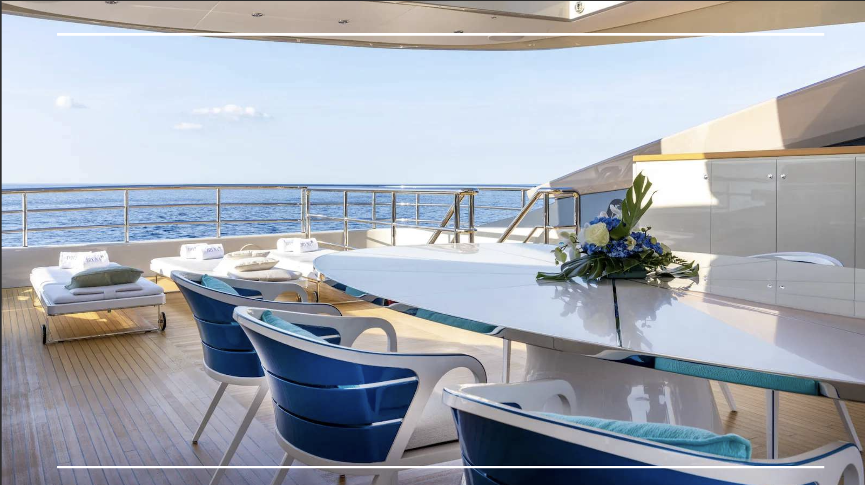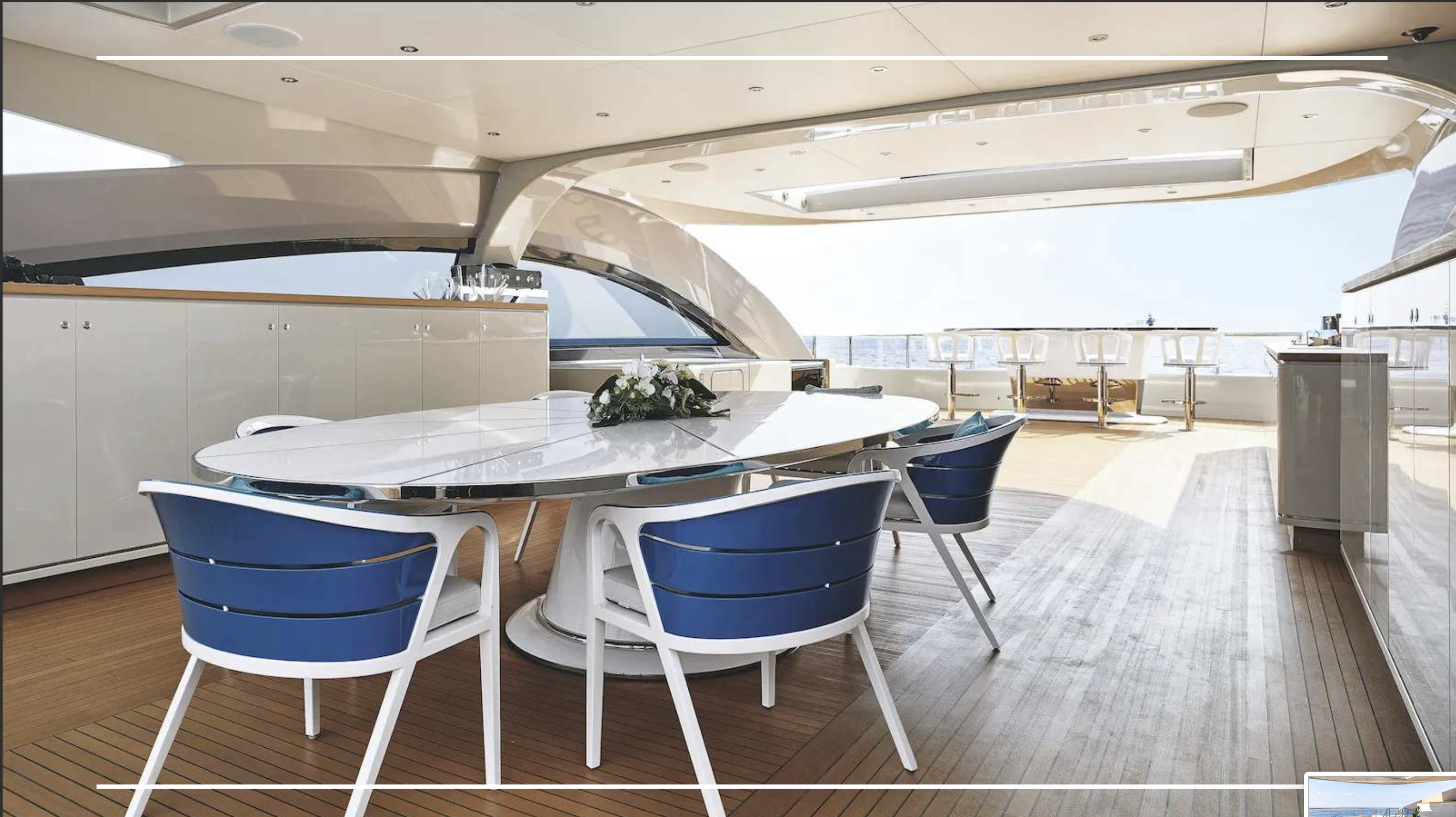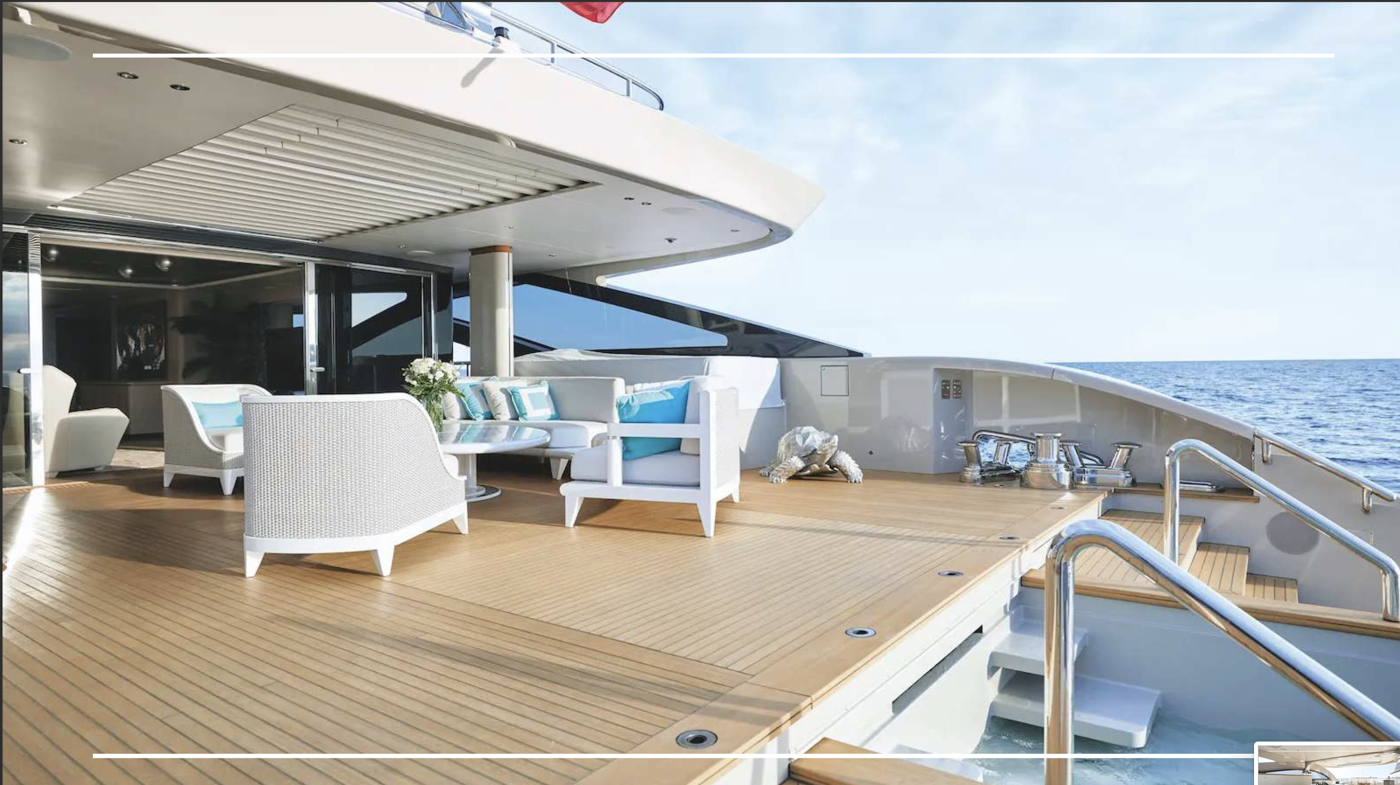 Kıç bölümde yer alan etkileyici açık alan, manzaraya karşı yüzmenize olanak tanıyan bir yüzme havuzuna sahiptir. Üst güvertelerde ise daha yüksekten manzarayı izleme ve mahremiyetin keyfini çıkarma imkânı sunar.