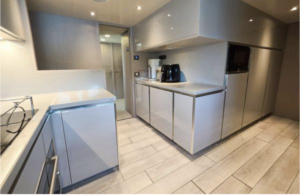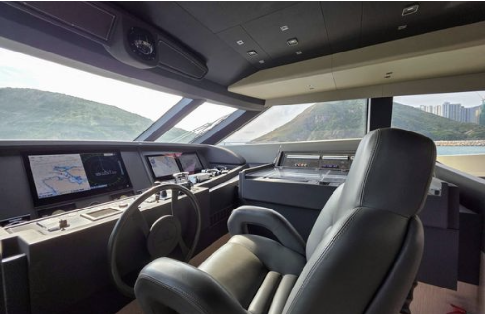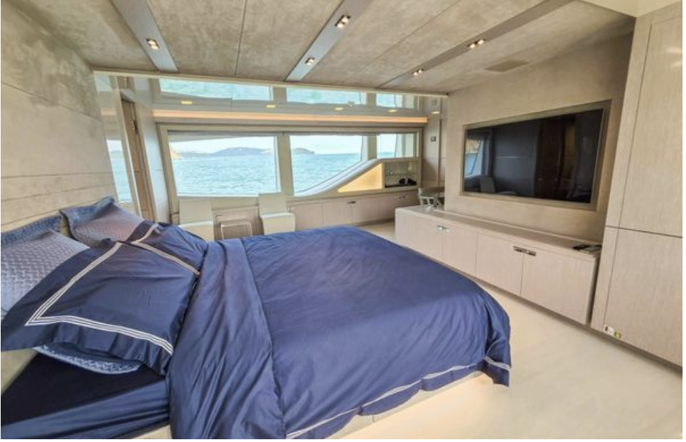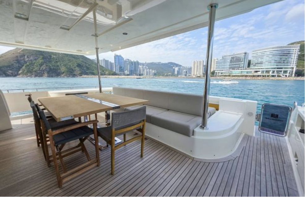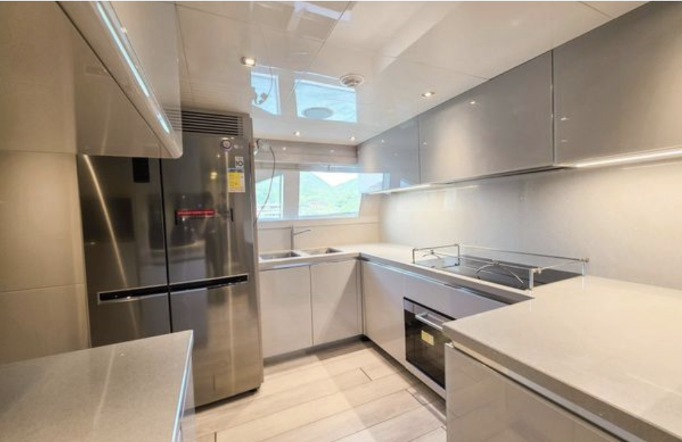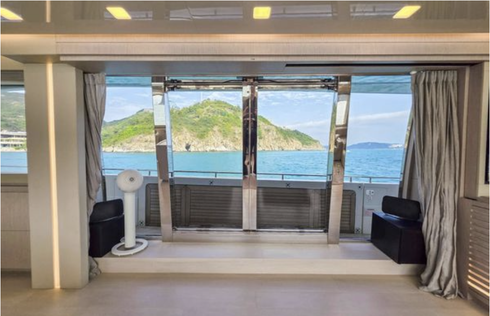 İç mekânı, tam genişlikte salon, tam donanımlı mutfak ve beş misafir kabini dahil olmak üzere ferah ve konforlu yaşam alanları sunar. Geniş panoramik pencereleri sayesinde bol doğal ışık alır. Açık alanlarıyla hem uzun seyirler hem de misafir ağırlamak için idealdir.