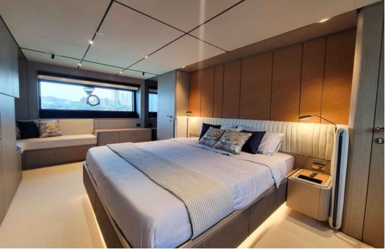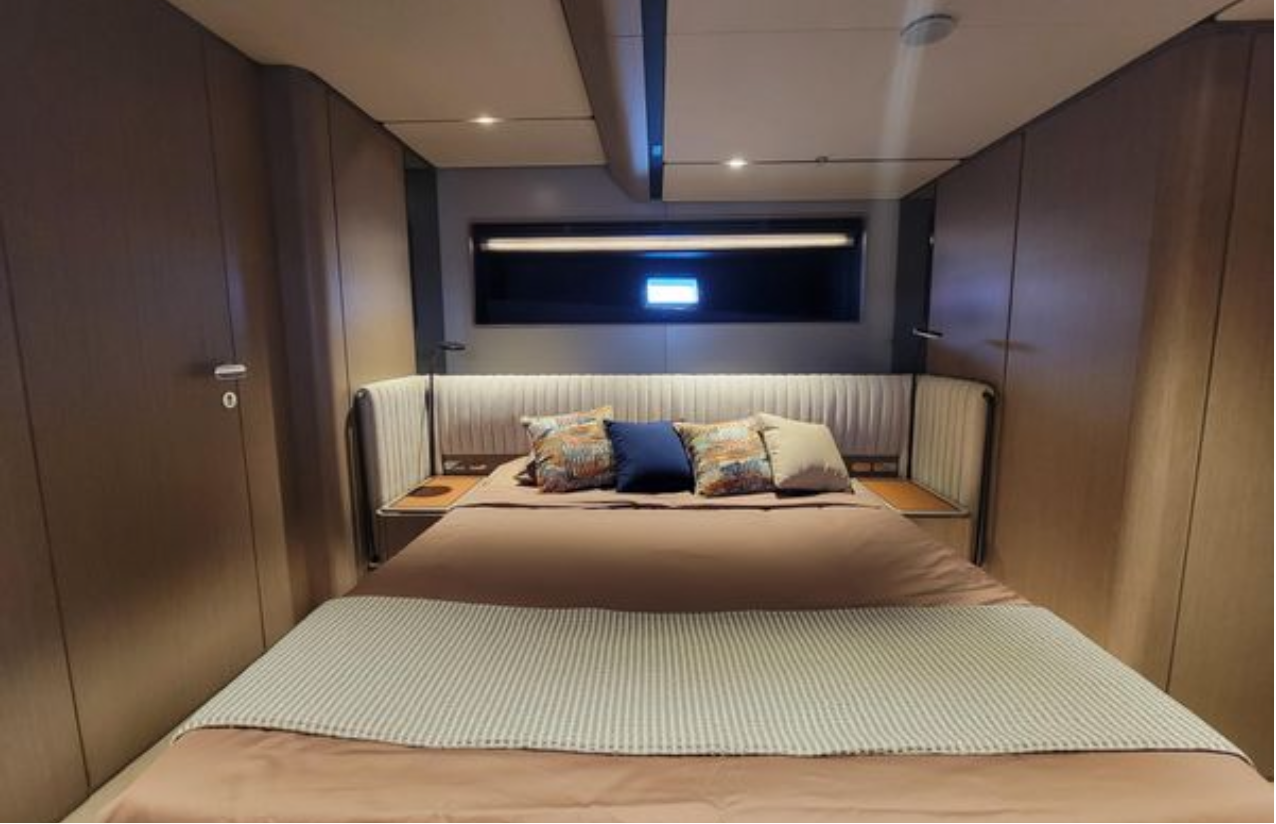 Ferretti’nin yenilikçi INFYNITO serisinin bir parçası olan INFYNITO 90, şık tasarımı, performansı ve lüks yaşam alanlarıyla öne çıkıyor. 2023 yılının sonunda inşa edilen ve 2024 yılında teslim edilen bu model, tam zamanlı mürettebatı tarafından özenle korunmakta olup sadece 102 motor saati ile sınıfının en iyi seçeneklerinden biridir.