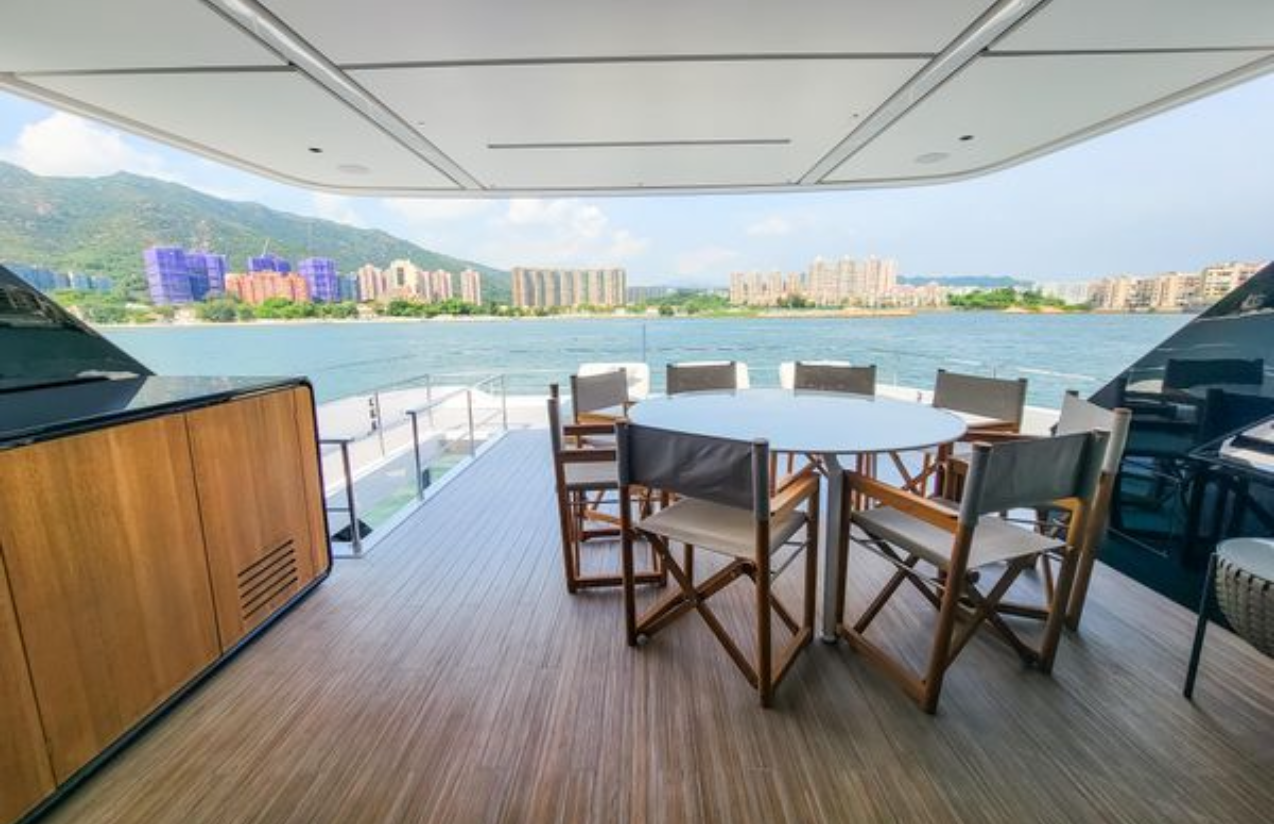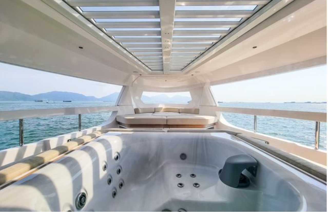 Yatın öne çıkan özelliklerinden biri, panoramik camlarla çevrili kapanabilir üst güverte Sky Lounge alanıdır. Sky Lounge, üst güverte kokpitine açılarak kesintisiz bir yaşam alanı yaratır. Ayrıca All-Season Terrace olarak bilinen özel ön güverte; örtülü, gizlilik sunan ve muhteşem manzaralar vadeden gerçek bir cennet köşesidir. Burada Jacuzzi ve etrafında geniş güneşlenme alanları bulunur.