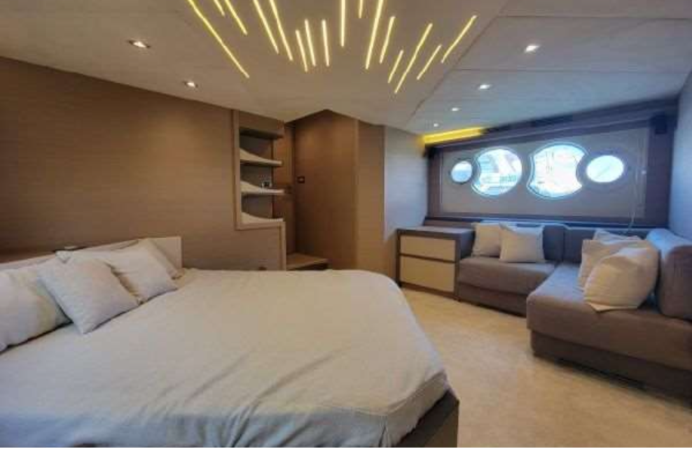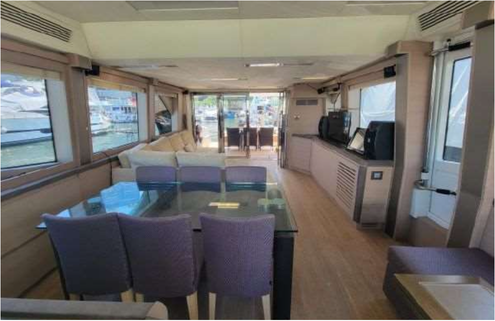 Oldukça iyi durumda sunulan Monte Carlo Yachts MCY 70 hemen teslim için hazırdır. İki adet MAN V8 1200 HP motor (her biri 950 saat), 2 x 20kVA Kohler jeneratör, baş pervane ve Seakeeper stabilizer donanımıyla 22 knot seyir hızına, 28 knot maksimum hıza sahiptir.