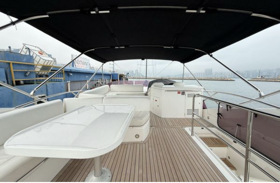 Ferah flybridge alanı, ikinci dümen ve oturma alanları