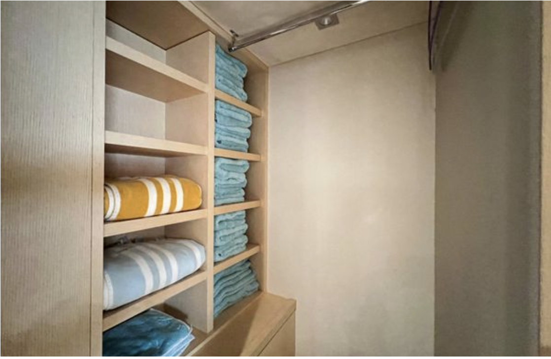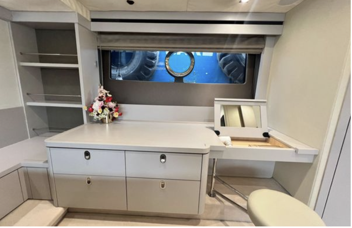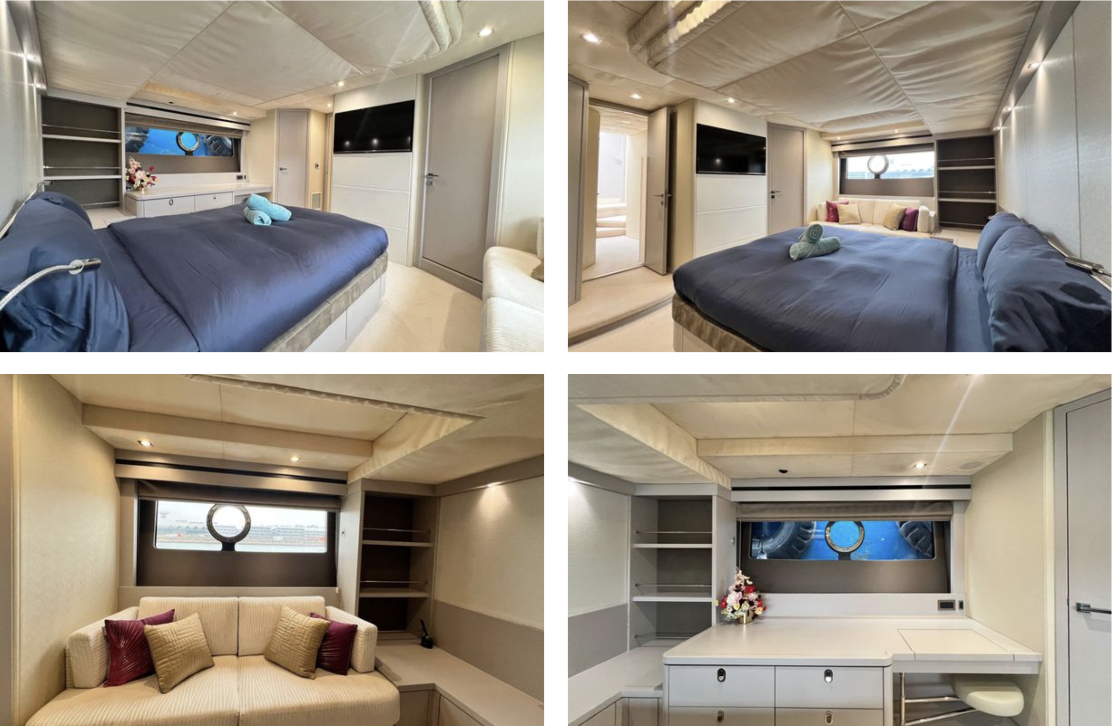 Tam genişlikte master kabin (makyaj masası, oturma alanı, geniş dolap ve ebeveyn banyosu)